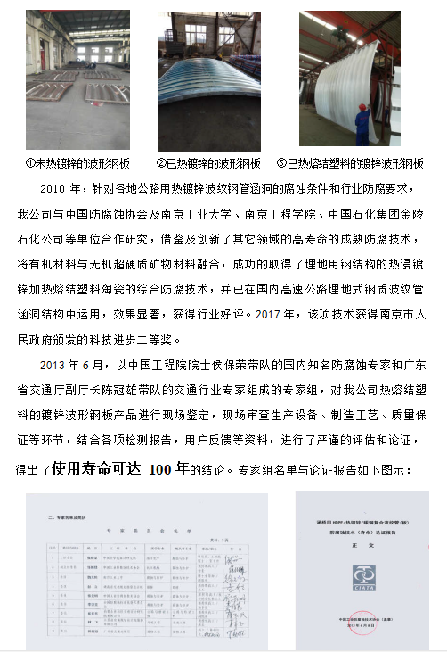 一、最早的波紋鋼綜合管廊在德國耶拿市,建于 1945 年,內(nèi)部設置有蒸汽管道、給水管道和電纜,已使用 73 年,采用熱浸鍍鋅防腐,使用狀態(tài)良好,國內(nèi)已經(jīng)有多批專家前往考察參觀。