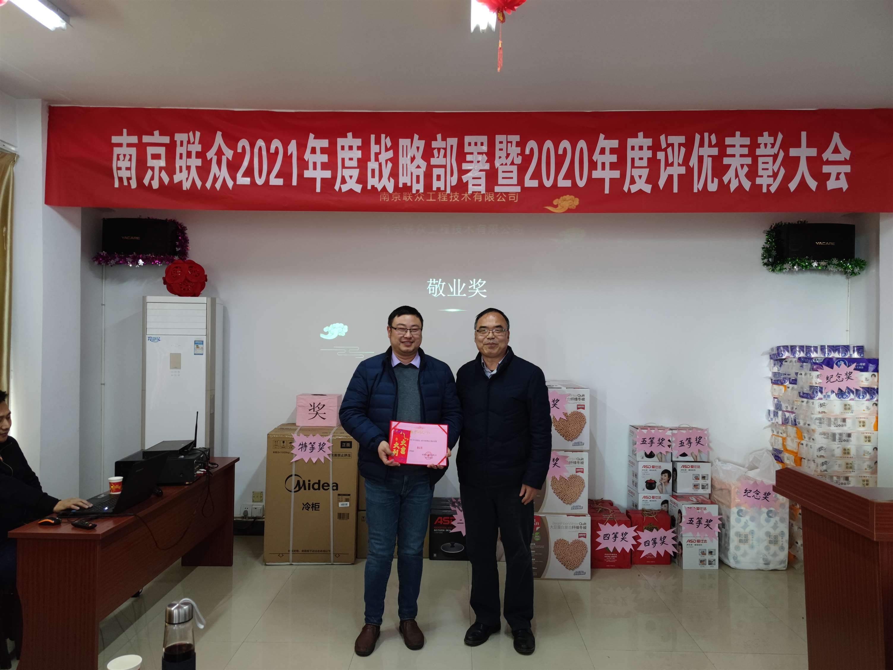 公司對去年的營業(yè)業(yè)績作了總結(jié),對來年的工作目標做了簡述。針對去年的表現(xiàn)設(shè)立了團隊及個人優(yōu)秀獎項,希望新年大家更加努力,迎來更進一步的成績。